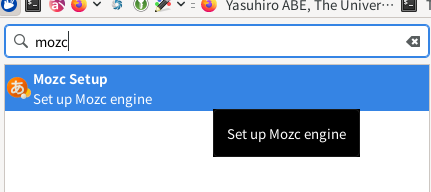 Mozcは日本語キーボードの利用が前提となっている設定のため、英数入力と日本語入力を切り替えるためにはメニューの操作が必要です。