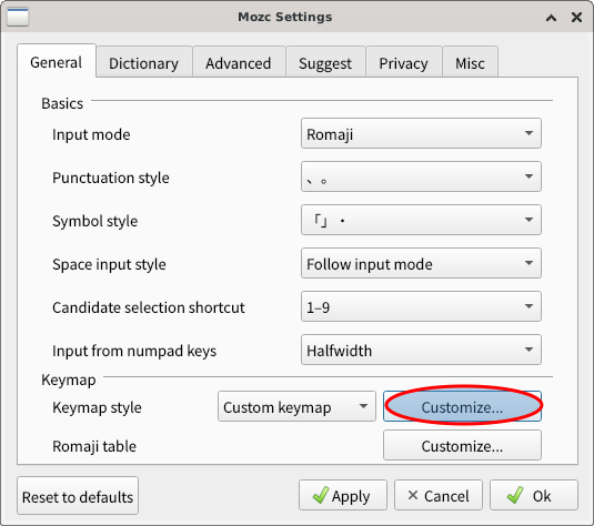 5.4.5.1. Mozc Settingsの起動とキーマップの変更